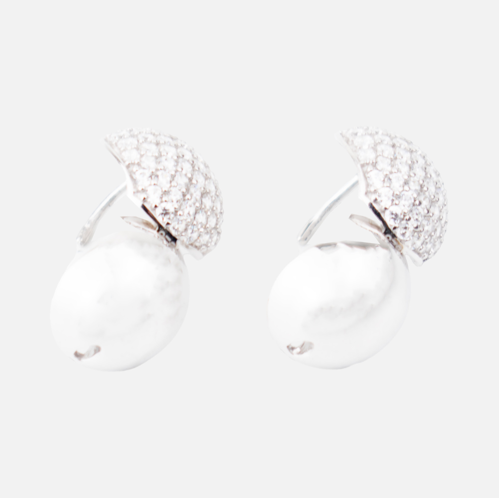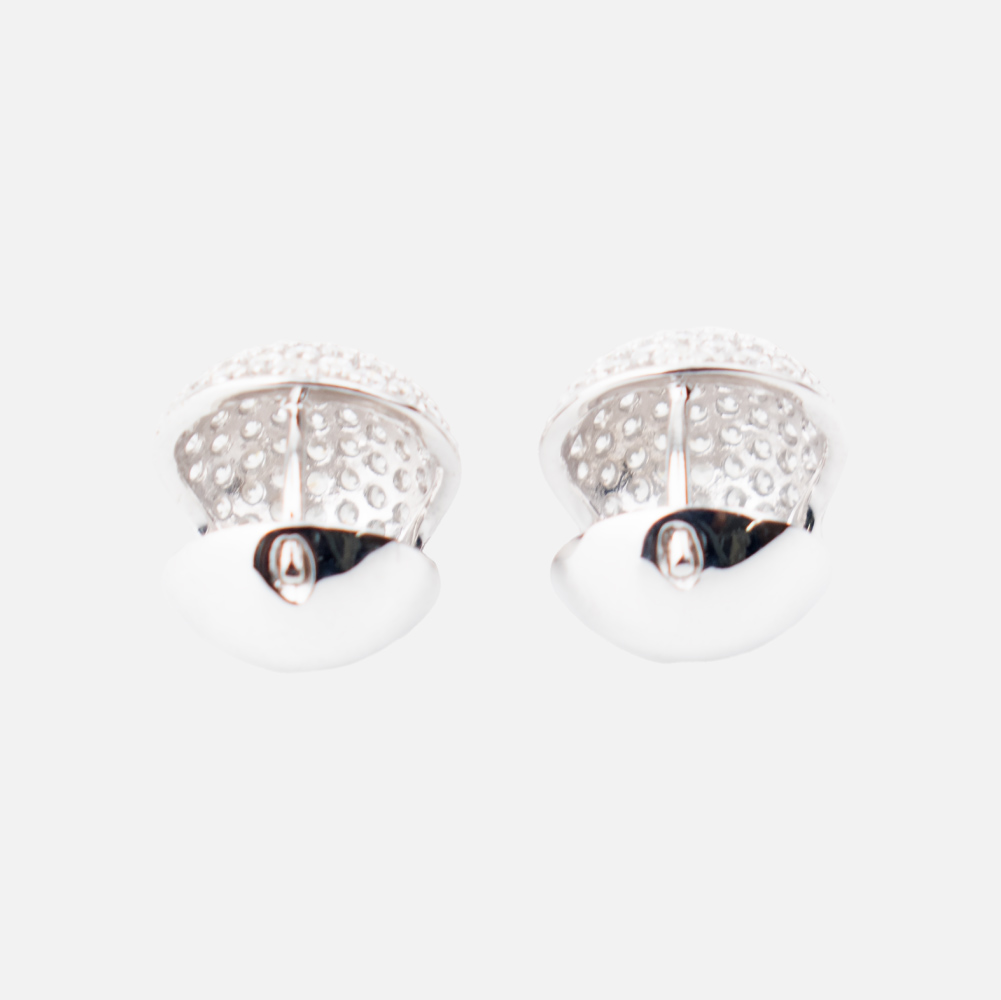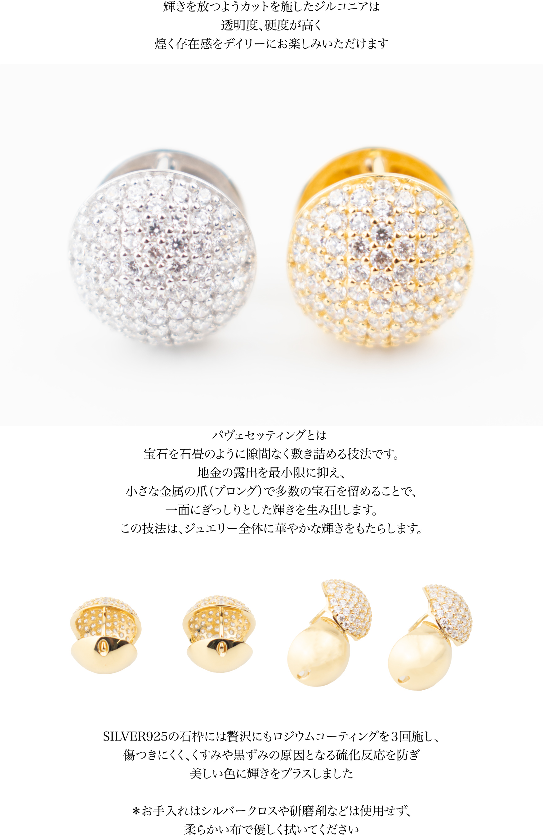 洗練された輝きを放つ贅沢なサークルピアス。ダイヤモンドに匹敵する輝きを放つジルコニア1石1石丁寧にカッティングを施し、1つずつ丁寧に配置することで、耳元に美しい輝きを与えます。SILVER925の高さのある石枠は贅沢にもロジウムコーティングを3回施し、サイドから見ても美しい白銀色の輝きで存在感が際立ちます。お顔周りに華やかさを添えるアクセサリーをデイリーにお楽しみください。