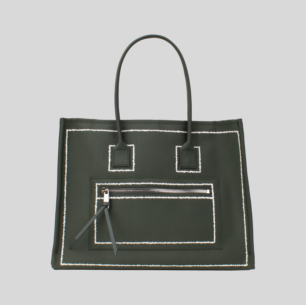 ペイントがキャッチーなキャンバストート。デイリーに使い勝手の良いサイズ感でポケットの収納を3箇所配置。