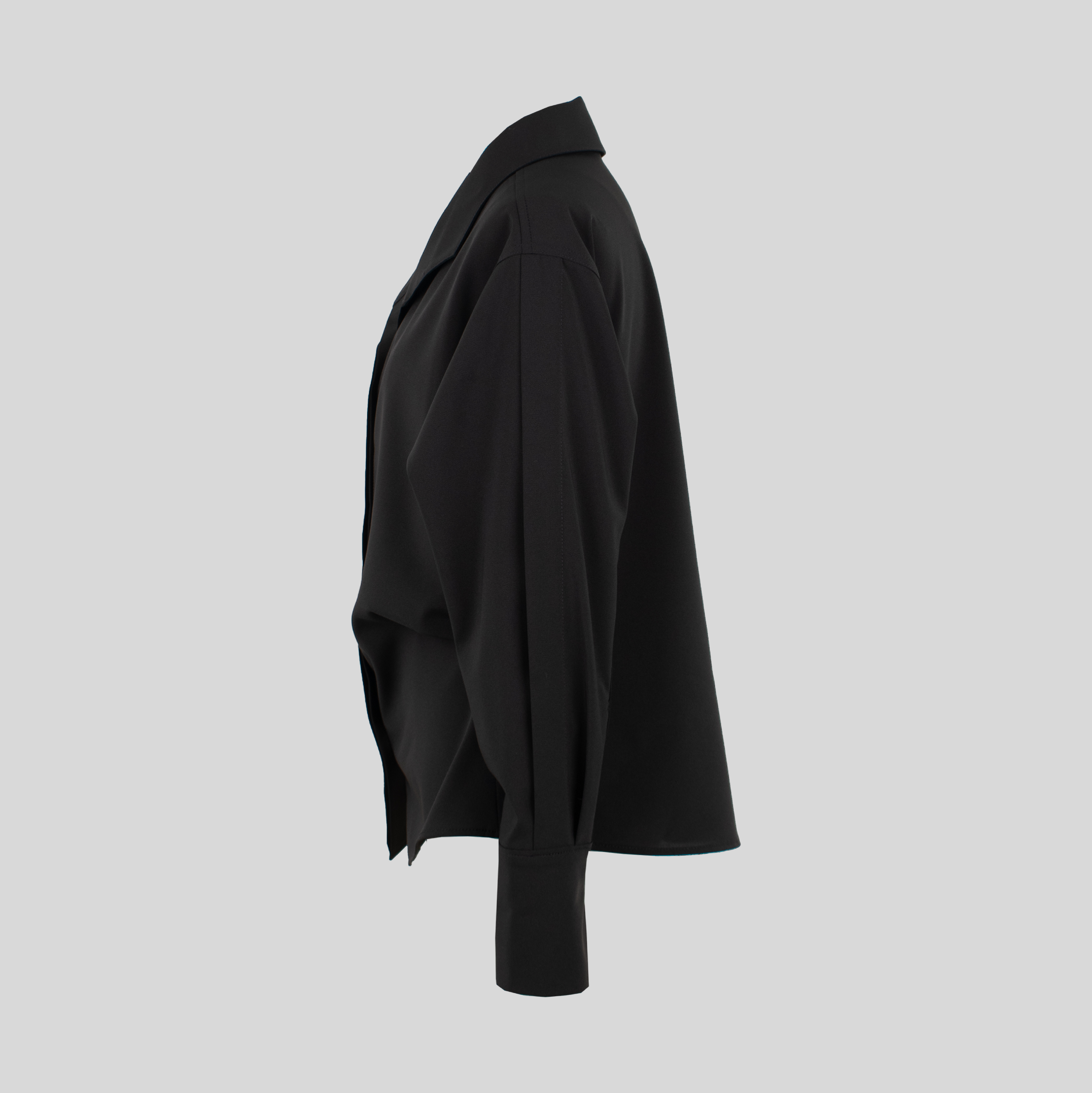 シンプルな中にレディライクさが香るデザインブラウス。シャリ感とコシのある生地はシワになりづらく落ち感があります。フロントサイドにはタックを施し立体感を演出。オケージョン、ビジネス、カジュアルどんなシーンにもマッチして、コーディネートに華やかなエッセンスをプラスしてくれ、着映えする一枚です。