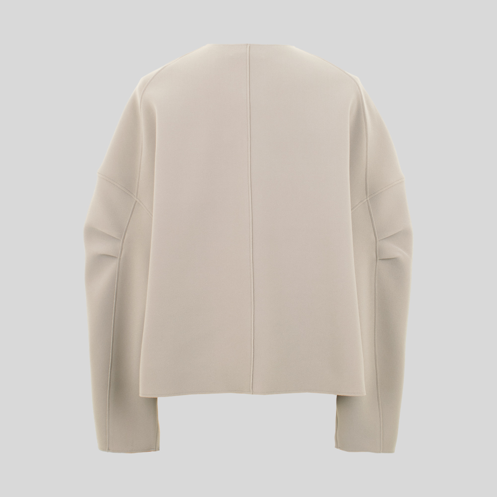 肘に施した2つのタックが立体感を生み、ベーシックの中に垣間見える小洒落た雰囲気が魅力です。ショート丈なので様々なコーディネートに合わせやすく、デイリーにお楽しみいただけます。