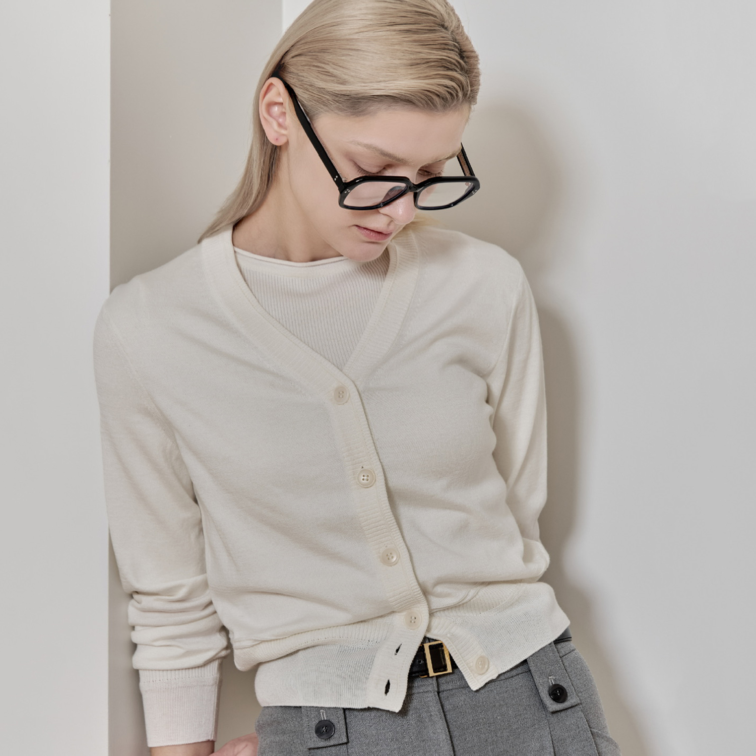 【2/21 19:00 ~ PRE ORDER】コットンカシミヤVカーディガン (white)