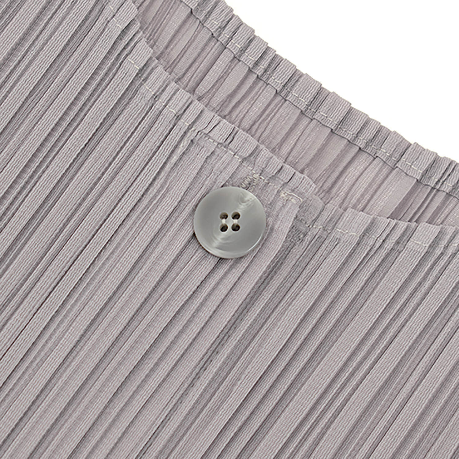 美しい光沢感のある生地にプリーツ加工を施し、ドルマン型で着映えするフォルムに仕上げました。プリーツがボディラインをすっきりと美しく引き立てます。アームの切り替えやボタンがアクセントとなりデイリーから旅行まで幅広く活躍します。